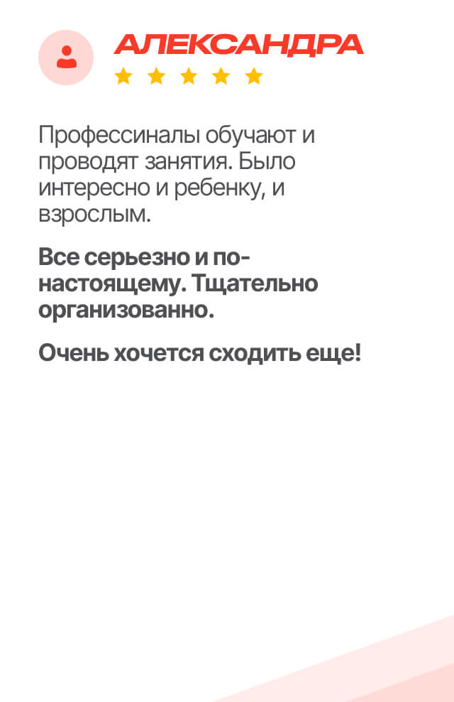 Семейные тренировки — очень популярны в нашем клубе. Вы вместе проходите этапы обучения. Вы становитесь командой и у вас появляется общая цель — научиться новому.